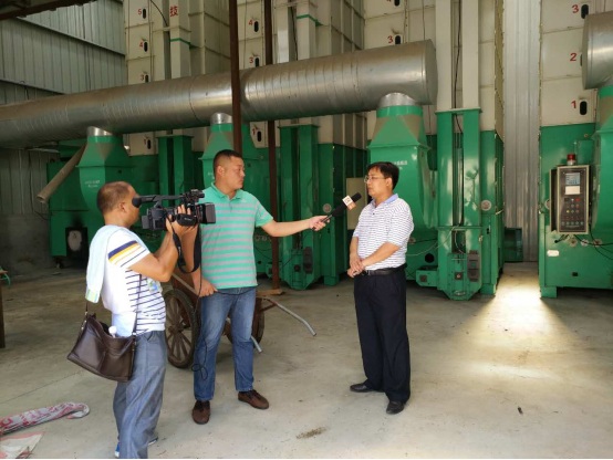 圖為郎溪農(nóng)委鄒主任、農(nóng)機局黃局長與客戶陳總合影,郎溪電視臺專題采訪災(zāi)情,郎溪電視臺高級主編高主編全程攝像。