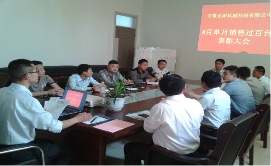 2015年5月3日上午在公司二樓會議室召開銷售部2015年第一季度工作總結會議及四月單月銷售過百臺表彰大會,公司總經理張為法、副總經理許為青等參加了本次會議。
